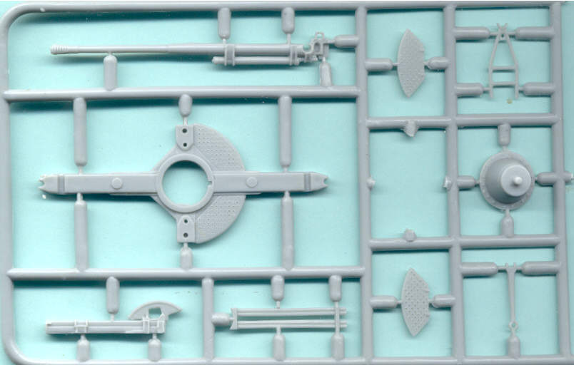 This sprue carries the 85-mm gun barrel with the recoil parts, part