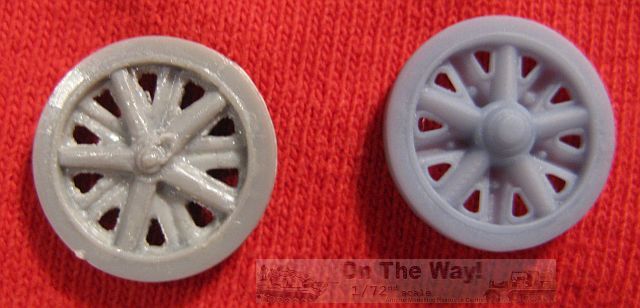 the comparison photo below, the kit wheels pale in comparison. I did have to add an axle cap along with a hold down ring, made from wire, to each wheel.