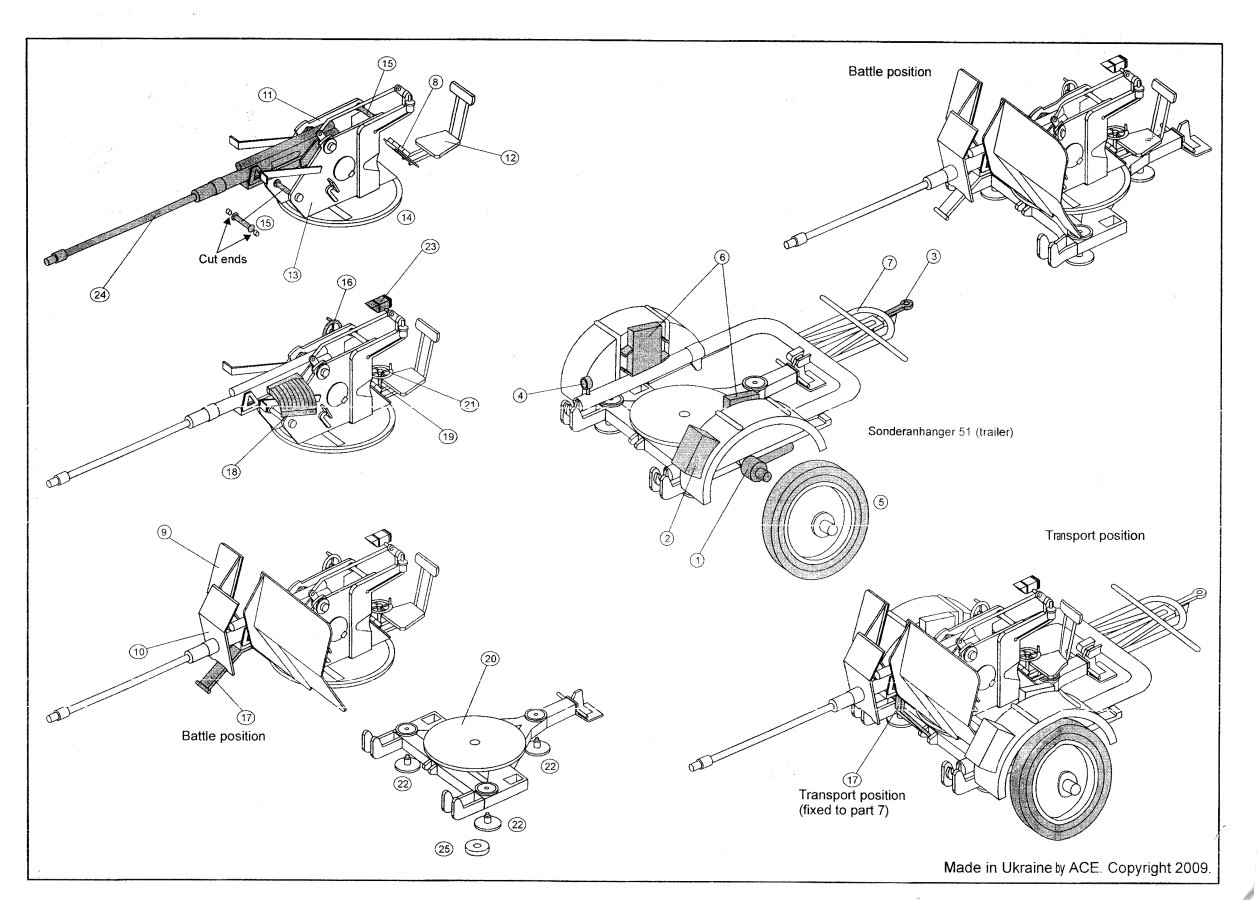 The gun parts are a mixed bag. The larger pieces such as the seat, base, platform, frame and shields are quite acceptable. On the other hand the small