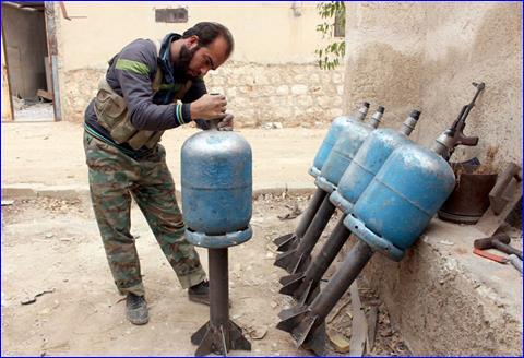 Syrian Liberation Army along with other Islamic factions conceived and built simple, easy to construct artillery designed along the lines of a spigot style mortar.