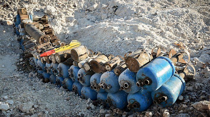 salvaged artillery barrels, and finned conversions of propane and other gas cylinders for ammunition, the guns were able to fire their improvised projectiles