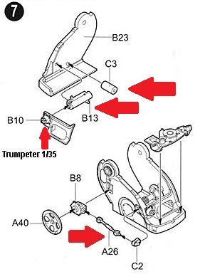 gear box (Trumpeter parts B10 & B13) and brace (Trumpeter part C3) because the open area