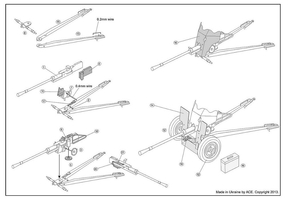 outer splinter shield. This is a common occurrence with Ace gun shields possessing a lot of molded on detail. All the parts, 22 in total, are moulded in a light grey styrene like