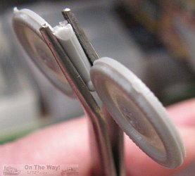 nuts on the equilibrator faces with discs punched from plastic sheet