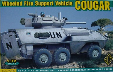 Based on the same Pirahna chassis as the LAV only this time with six wheels instead of 8, The 6 wheeled version was in service before the LAV in the Canadian Army. It was employed in 3 versions the APC, the FSV and the repair version. This is the Fire Support Version mounting the complete turret of the British Scorpion tank mounting the 76mm gun. The Hull has the same breakdown as the LAV series only shorter for obvious reasons ! the hull is nicely detailed with the drivers hatch open in four pieces with the troop compartment roof being specific to each version, The other sprue contains all the hull fittings including the exhaust. The turret is the same as the Scorpion tank which gives rise to hopes that we will see one in 1/72nd in the future. The roof hatches are open, It is very nicely detailed and correct in shape. The suspension is the same as used on the 8 wheeled LAV, although only 6 are needed. The wheels can be made to rotate, also the front two wheels can also be made to turn or at least posed with the wheels turned without any problems or messing. The kit contains the same rubber tyres as the LAV, these are very nicely detailed Markings are provided for 5 vehicles all Canadian, 2 white UN vehicles, 1 SFOR and Canadian based one in green the other green and black. This is a very nice kit of an unusual vehiclewhich was typically released after I tried to convert the 8 wheeled LAV! The kit scales out well to 1/72nd according to the references and drawings I have. References Janes Armour and Artillery 1990-1991 11th edition by Christopher Foss. Jane's Tanks and Combat Vehicles Recognition guide Second Edition by Christopher F Foss
