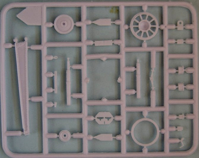 The three main sprues are exactly the same as the A-19 kit. Unlike the A-19 though, wartime pictures are easier to find of the ML-20, and although museum pieces show that the pistons are covered by thin sheet, wartime pictures show the sheet not to be present. The new sprue is the barrel complete with shells and cases. Although the barrel is moulded solid, it has good detail on the outside and with some careful drilling around the muzzel will improve. Another welcome artillery piece from ACE and something for the tractors to tow at last. |