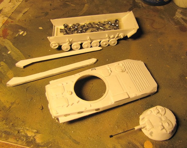 shallow dents on the turret sides had to be puttied and smoothed, though. The turret carries an array of different equipment and most