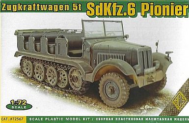 The 1/72-scale Sd.Kfz 6 Zugkraftwagen 5-ton (towing motor vehicle) released in 2020 by ACE Models represents the Pioneer (Pionier) variant used to tow trailers