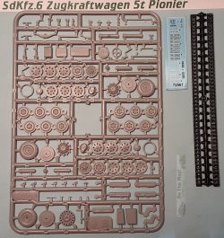 (tan plastic), note that the roadwheels use a leaf spring suspension which was a feature of the Sd.Kfz. 7 during its production. The ACE Sd.Kfz. 6 frame, left most, is more