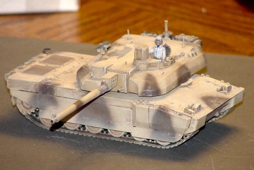 I have no idea if I matched the colors correctly, but the tan in the photographs looked very yellow, so I used British Gulf War Tan, which has a yellow tint, and Panzer Dark Brown, which matched very well to it. It would be really nice to replicate the camouflage netting which was often seen on these tanks.