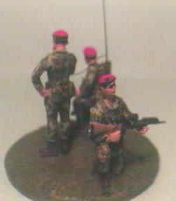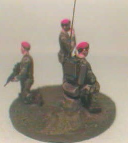 This set contains 9 figures and a small diorama base. There is a MILAN launcher and firer plus a MILAN reloader, a radio man with a PR4G squad radio, an officer using this radio. Figures are painted by Ludovic Bertrand