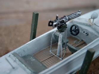 • scratch build construction of a tri-pod mount for the Maxim gun and placement in the middle of the boat just behind the front seats.