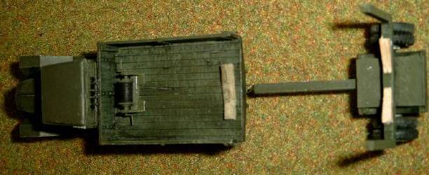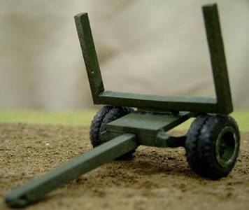 The tow bar needs to be drilled out at the front and an eye must be made from wire. The kit suggests making this in a triangular form and it works out well but it looks unreal and so I made a round one as seen on most military trailers back then.