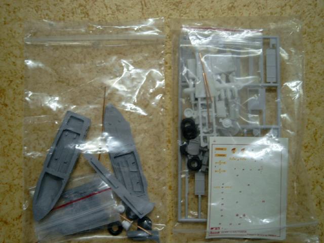 The boat trailer parts come in a fragile resin but there also is a set of vinyl tyres. The PG 117 is in resin too and needs to be detailed with many scratch built parts.