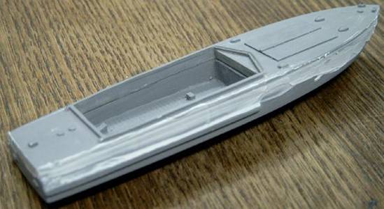This one got a primer followed by a cote of Medium Sea Grey. The kit provides two colour options, one for a light grey – dark grey camouflage and one for a total light grey boat. I opted for the last one but added a drop of black to the grey, a bit darker than the picture on the cover. I sprayed it very thin in order to give the boat a used appearance. I do not think that the Russians took much time to keep their material in optimal condition.
