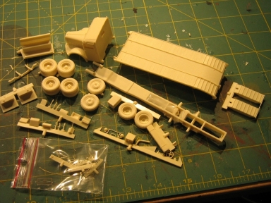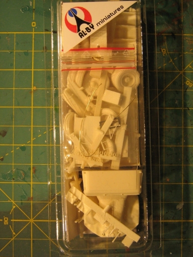 Material: Resin Quality: very good casting quality and fine detail on kit Parts: 50 (cab, chassis, cargo bed, x2 ramps, x4 choks, x2 front wheels, x4 rear wheels, cab seats, cab side runners, steering column, sterring wheel, headlight assembly, wire, misc. pieces) Instructions: exploded diagram, line drawing, x2 period photos of truck Packaging: plastic blister pack Additional: 1st time released in this scale