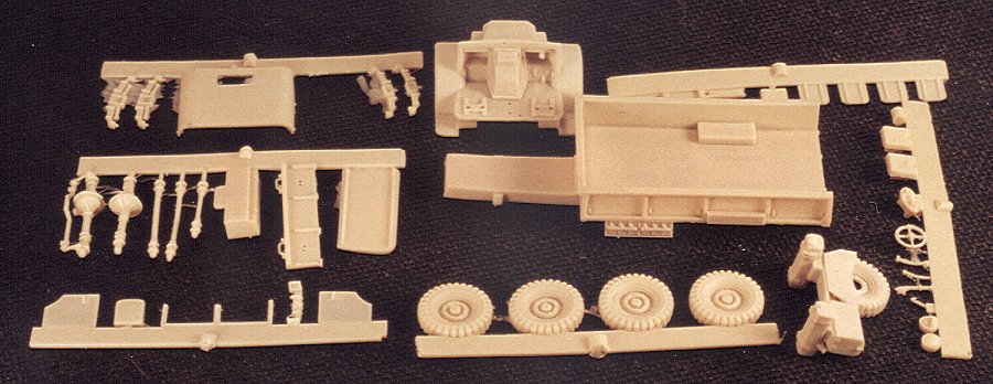 This is a nice kit, based heavily on the ESCI Quad tractor. There is some light flash and the windshields have to be cut to measure and put. The doors are particularly finely moulded and must be handled carefully when renoving them from the sprue/pour block.