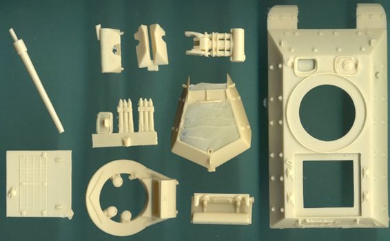 This particular kit is a conversion designed for the old ESCI Sherman kit. It would work with either the M4A1, or M4A3, but I wouldn't understand why someone would give up one of the rare M4A3's for a conversion. As you can see, several parts are needed from the plastic kit, specifically the lower hull, chassis, wheels and tracks, as well as some of the smaller hull details. The turret is open, which allows for a great view of the interior, so I think the M4A1 kit would be better suited, since it includes some hull interior details, which the A3 doesn't, if I remember correctly. Not much detail is supplied by Al.By for the turret interior. Just the gun breach, gunner's seats, and some ammunition for the turret walls. I'd recommend getting some photos or drawings of the turret interior so the missing detail can be scratchbuilt.
