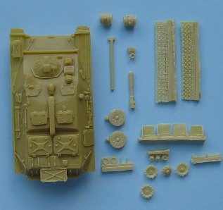 Currently the only ASU-85 on the market (that I know of) cast in the usual buff coloured resin of all Armo kit and to the usual standard, with my example being free from blemishes or faults. The hull is cast in one piece with unfortunately all the hatches closed, that is really only the real fault with this kit, the other being the barrel, which is moulded in two parts, the fume extractor and muzzle brake in one piece and the main part of the barrel the other, here lies the other fault, with the lower portion of the barrel being in my mind a little on the thin side and could be improved by beefing it up a bit or replacing that part with styrene rod of a greater diameter. As with most Armo kits care must be taken when attaching the wheels, to ensure that the correct ride height is achieved, unfortunately Armo doesn't give any indication of what this should be ! according to what I know this should be 5.55mm. The kit uses the same tracks and wheels as the ZSU-23-4 which are also the same as the PT-76 kit. The kit measures out well to 1/72nd scale according to my references. references: Janes Armour and Artillery 1990-91 by Christopher F Foss