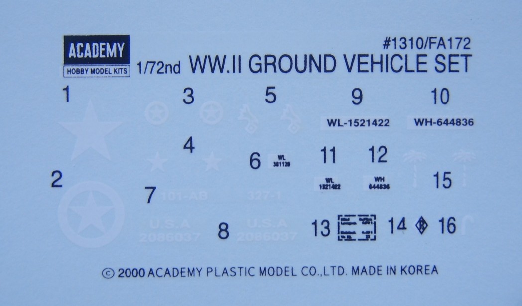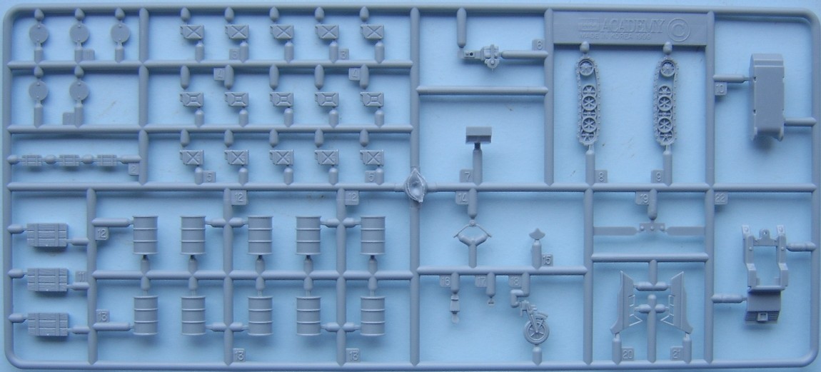 Although there is a comparison of the Kettenkrad in this kit, there has not been until now a preview of the kit. In the box are four sprues, one for each vehicle and one clear sprue for the windows and also clear parts to show the tiny engines should you wish to do so. First is the Kubelwagon, These kits are not as refined as probably later releases are, the hood can be modeled up or down, the interior is basically detailed although placement of some parts are an approximation such as the rear hand rail which actually attaches to the doors, there is a nice little engine included with a lear piece for the cover should you wish to display it so, a plastic cover is also included although really you could have just painted the clear part. The Second vehicle is the Jeep, the difference here is that the jeep has the frame for the hood but no canvas, it can also only be modeled retracted. Again the interior is detailed with at least the gear stick being there but none of the other sticks. Again a basic engine is included as is a clear bonnet (or Hood for our U.S Friends) the windscreen is supplied as a clear part or a plastic part with out windows. A .50 Cal is supplied for mounting on the pedestal mount in the rear. The last vehicle is the kettenkrad, with it being so small the rest of the sprue is taken up with Jerry cans oil/fuel drums and various boxes. Again a basic engine is included, the tracks units are single piece with the track moulded in place, this works quite well in this scale. the comparison can be found here The clear parts for the vehicles Decals are provided and are very well printed but basic Unfortunately I have no references for these vehicles although the Kettenkrad and Kubelwagon look OK the Jeep looks a bit odd and I am not sure why, maybe it has something to do with the windshield, when I find the Heller/Airfix Jeep I will do a comparison of the two. |