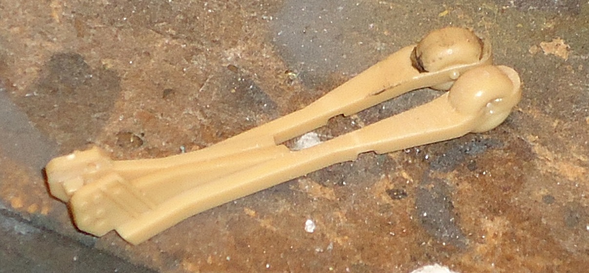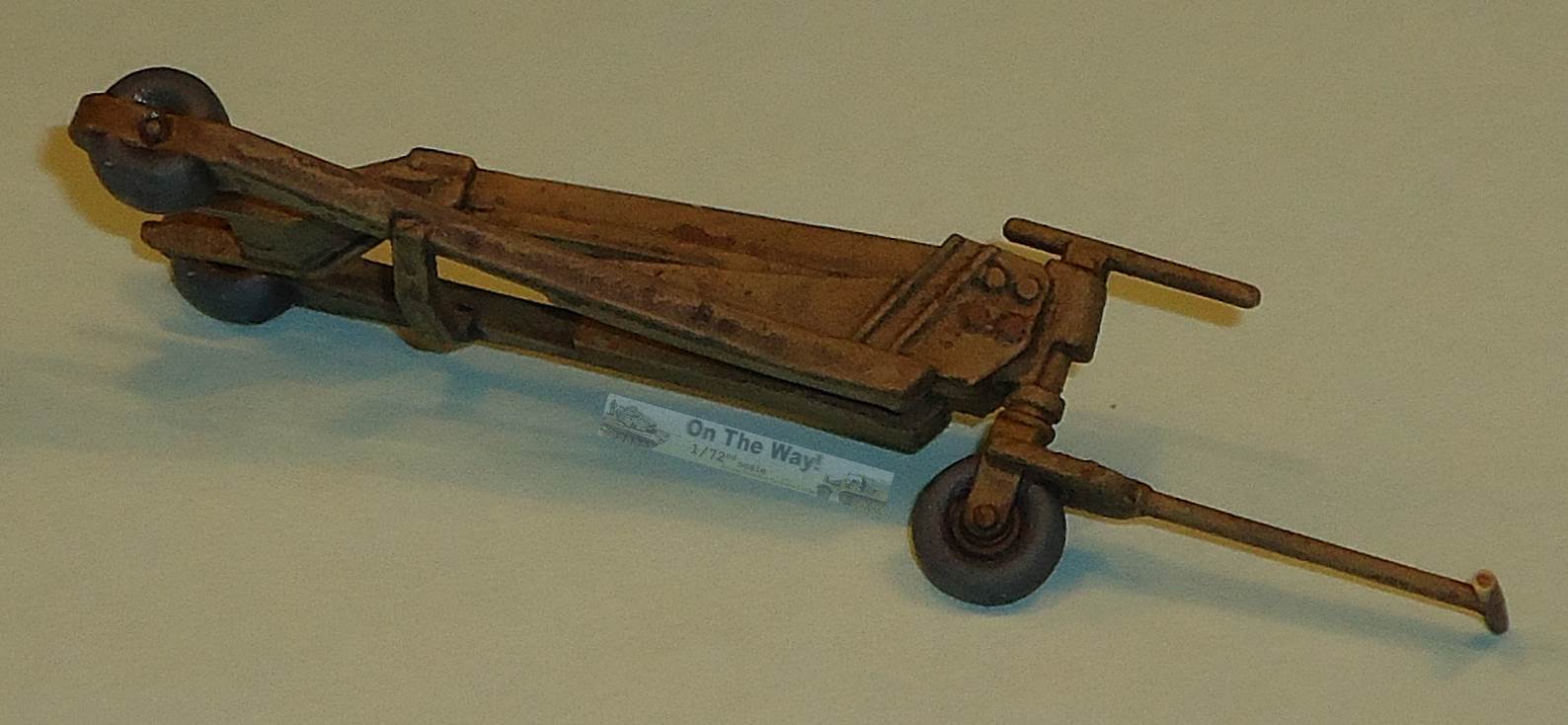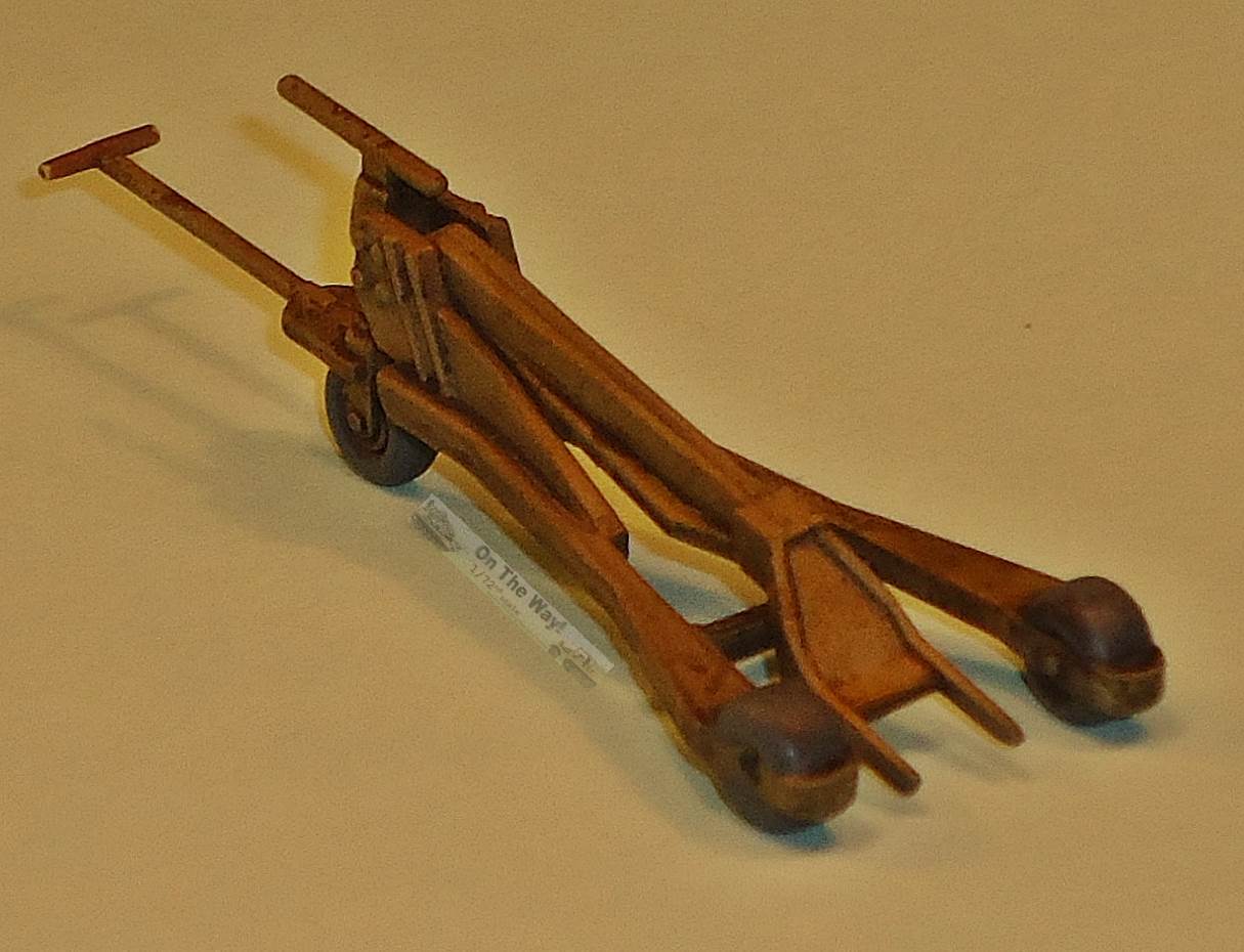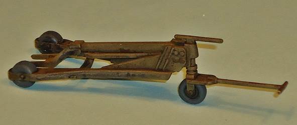 Comparison of the pictures above with the Academy parts below immediately shows that Academy has simplified the trolley enormously in the area of the wheel arms. There are no technological reasons not to be able to get a better rendition, even if you try to do it with a single piece. Being rather lazy, I limited my remedial work to some carving around the wheels, to make them stand out better. This is highly insufficient to capture the fragile look, as you can see below in this 1/32 model, but it will have to do. Notice, in the picture above, how frail the 1/32 model looks, compared to the 1/72 rendition we have here.