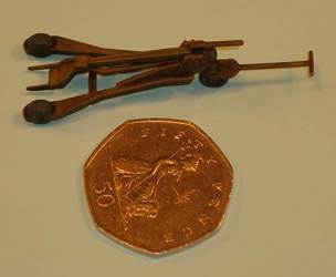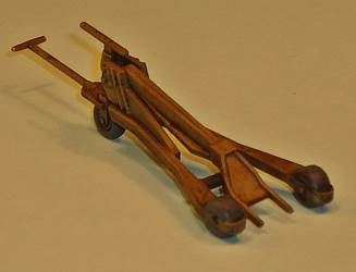When installing the lifting arm I decided to fill the hole for the pivot. Unfortunately I used an excessive amount of filler and destroyed some detail in the process. The 4 bolts on the side of the trolley are therefore replicas of those originally found on the kit parts. Note how small the assembled "vehicle" actually is, and how small my allowance has become.