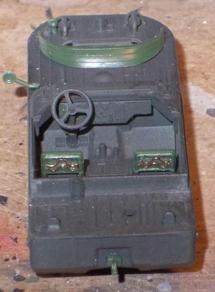 Note that I chose to paint the seats in a leathery color, solely for artistic purposes. The same argument goes for the whitewash, for that matter, as the only picture of the vehicle doesn't show any.