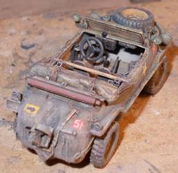 note: History While the Academy kit isn't perfect, it is a far cry from the Hasegawa kit in every respect and actually captures the looks of the vehicle quite well. The Eduard set is a masterpiece of PE-engineering but is not for the faint of heart, and I plead guilty to loosing the odd bit or shying away from using the sundry part. The MK72 wheels were necessary, not only because the Academy wheels are rather poor, but also because the particular vehicle I wanted to replicate had the cross-country tyres.