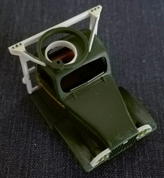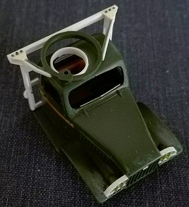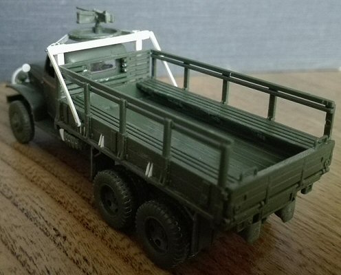I didn’t find the technical drawings so I had to scale it down from photos and sketches. To make it I used plastic strips and stretched sprue. Surely some dimensions are not 100% correct (I had also to adapt some dimensions to the kit parts) despite this, I prefer my solution because it is the only mount type of which I found photographic evidence being used on the wooden bodies. The only alternative to having an unarmed truck would be to use the improved M32 mount on a metal body, taken from another kit. |