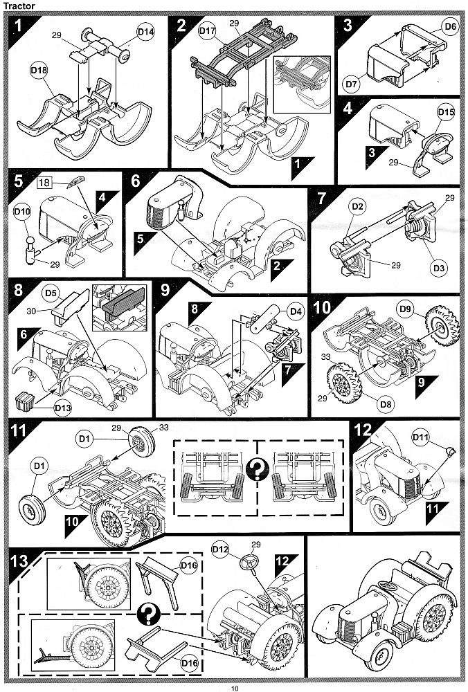 The tractor consists of 19 light blue-grey styrene-like plastic parts. They are well molded with very little flash. Detail is very good. There are a few ejector pin marks that need to be