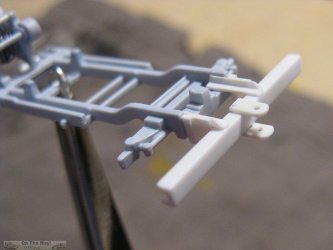 I made my own connecting rod using a piece of thin plastic rod. I scratchbuilt the linkage located on the side of the transmission cover. As there's no easy way to