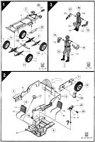 Inside the box you get two sprues containing 53 parts molded in a softish pale olive colour. There is also a sprue containing 2 clear parts for the headlights and windshield, an instruction sheet and a sheet of decals. There are some ejector pin marks which are often in places where they can be seen and sometimes in difficult spots to remove and a few sink marks to deal with. There are also minor seams on most of the parts that require scraping.