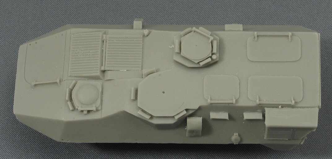 Without modifications, the kit builds up into an Austrian Pandur I; seems logical because the box art gives you a picture of one in white UN colours. Should you plan to model a vehicle used by another nation, be aware that, because of local specifications, there are numerous differences with the Austrian version. First, you have the classic “small” adaptations like antenna bases, choice of tires, etc…. but there is more : the Slovene APC for instance, has a one big rear hatch instead of the two doors as provided by the kit (see here), while the Kuwaiti vehicles is 50 cm longer. On the other hand, the roof of the Belgian troop compartment is 20 cm higher (See right). Therefore,