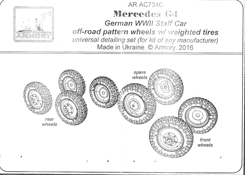 newer ICM release, though I would suspect that they would look best on the more accurate ICM kit. The package comes with 8 wheels with off-road style tread pattern.