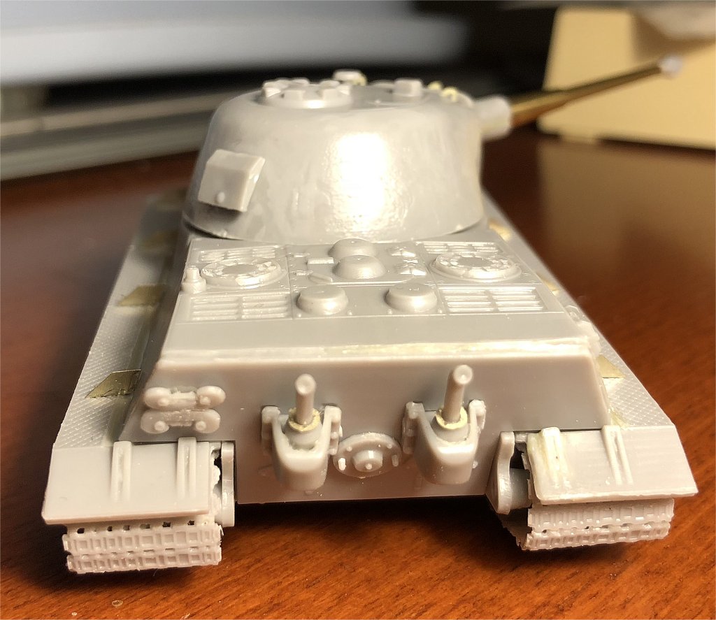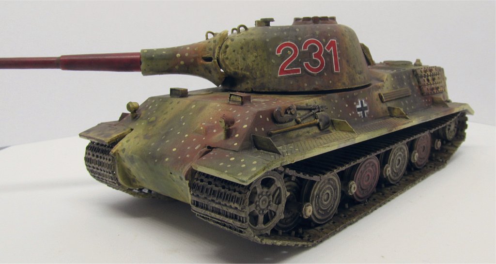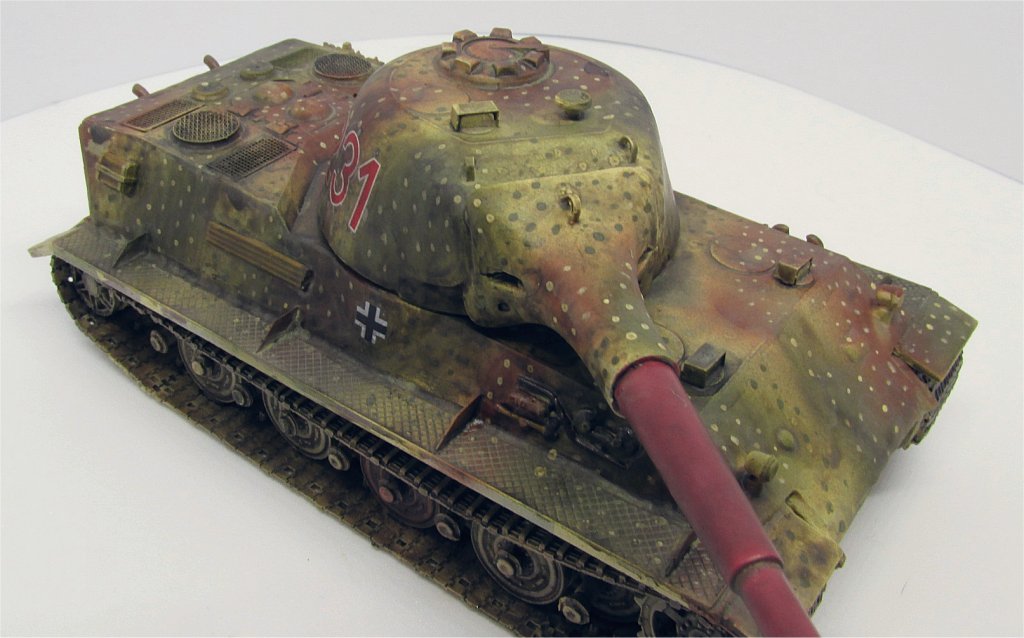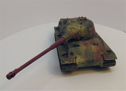 I chose the "dot ambush pattern" which I think is suggestive for a late war German tank. The tiny decal sheet contains some small crosses, so I used some spare decals for the numbering.