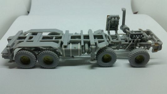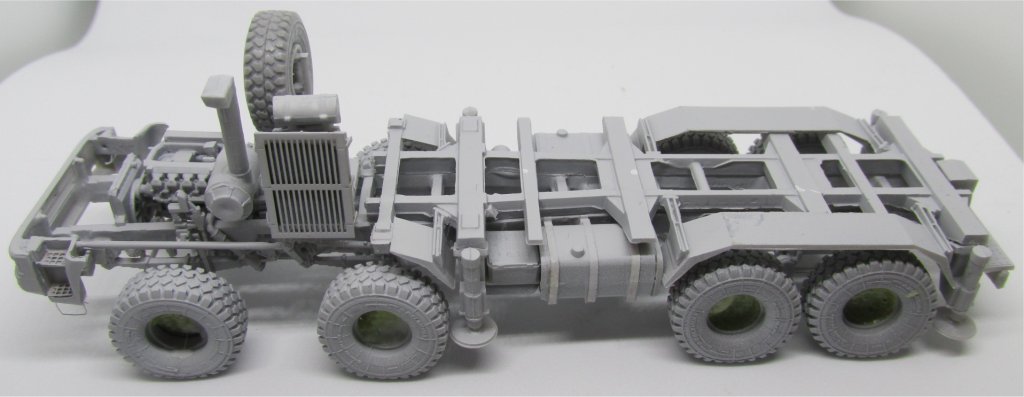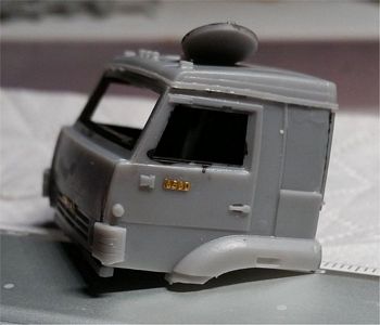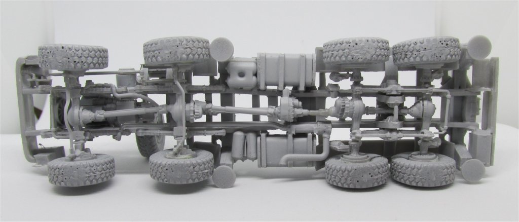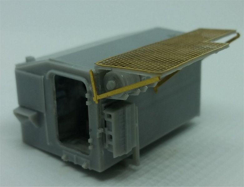 The engine (step 6) is resin, with some plastic parts to be added. Pictures of the real vehicle show it to be more complex-looking that it is here, so it would need a serious over-detailing to be exposed (in the real vehicle, the cab can be tilted anteriorly to access the engine.