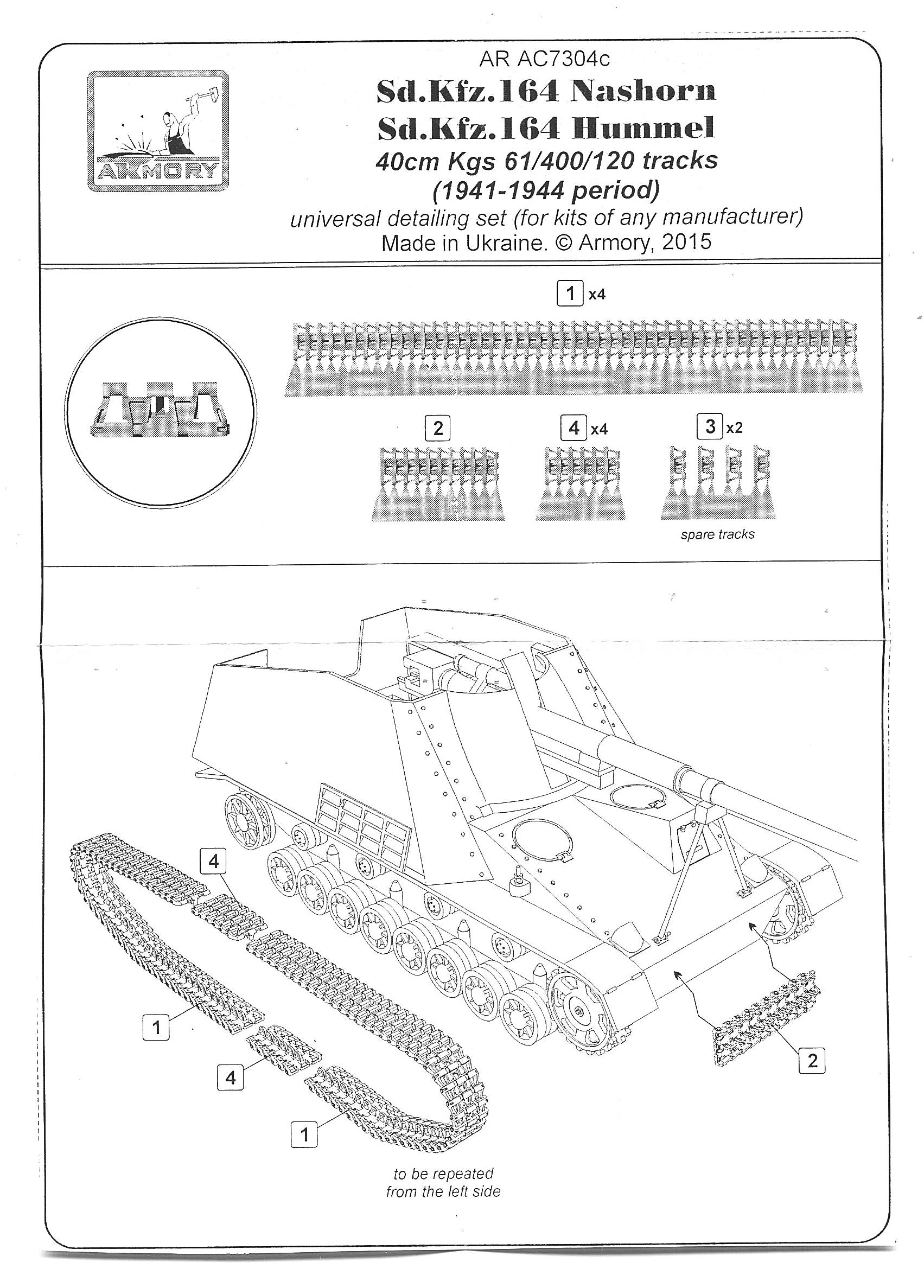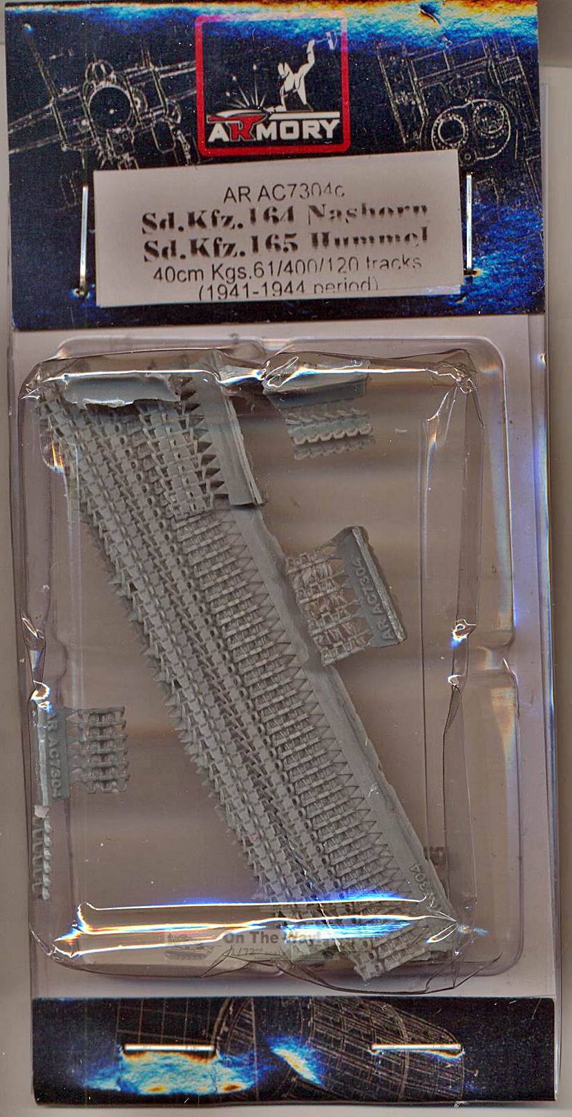 Compared to the tracks in the Revell Nashorn kit (middle) and Dragon Nashorn/Hornisse/Hummel kit (right), the Armory tracks have the upper hand. Not only are they more delicate with sharper detail, they also are the only ones with open guide teeth and a center section that retains the V-shape of the skeleton track. (The others have a parallel section.) All three brands represent the same style of track.