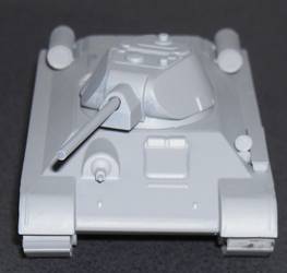 Not surprisingly, the kit is very similar to the Armourfast T-34/85, reviewed earlier, to which I would like to refer the reader for more pictures. The green plastic in this kit is quite soft; something in between the usual styrene and vinyl, which is slightly annoying when sanding or scoring. The plastic reacts very well to MEK however, but paint adherence is low. The hull is a two piece affair, to