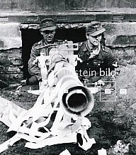 Early on in the re-arming of the German forces following World War One, anti-tank guns were a big part of the German tank defense plan. By 1943 it was becoming obvious that current anti-tank guns and their involved production were not able to keep up with the growing demand for tank killing weapons from the various fighting units. One solution was the 8.8cm Raketenwerfer 43, nicknamed "Püppchen". This was a small two-wheeled gun that fired an 8.8cm rocket-propelled, fin-stabilized projectile with a shaped charge warhead much like that used by the Panzerschreck (another rocket laucher similar to the American bazooka). Production was started in late 1943, but the numbers built were limited to around 1,000 units due to the fact that the Panzerschreck and Panzerfaust were proving to be about as effective at knocking out tanks and much easier to produce and operate.