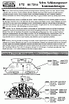 The body comes as two separate and hollow parts, one piece each for the upper hull and lower hulls. Unfortunately the joint between the two parts did not match very well. The top half was slightly wider than the bottom half causing a very noticeable step where the two met. Now I don't have a lot of reference material for this vehicle but I'm pretty sure that the top and bottom halves should produce a flush joint and not have a step. So I had a dilemma on my hands - either leave things as is or at least try to mitigate the situation. I went with the latter choice and tried to get the two halve to line up properly. I was able to get a short run of the center portion of the upper hull to meet along the edge of the lower hull by spreading the upper hull part slightly with a piece of plastic sprue glued between its sides, but this was not possible near the fore and aft portions of the upper hull as there was not enough flex to allow the part to be spread as I had done for the middle. So in the end I had to just leave the fix partially done and live with the end result. The bed frame antenna was an etched part. I didn't like its flat look and it turned out to be very easily bent out of shape. I didn't even bother adding it and chose to fill the mounting holes to convert the vehicle into the non-command Infanteriewagen version which lacks the bed frame antenna but is externally the same as the Kommandowagen. The supplied spotlight was not added and its mounting hole was filled. None of my reference pictures showed one mounted. Some sanding was done to add some curvature to the mufflers and some sandpaper was run edgewise between the exhaust pipes and the body to produce some separation. Then a hole was drilled in each pipe to make them look like hollow tubes. I had a real problem with removing the bumpers from their pour stubs. No matter how careful I was each one had a small notch in its rim after it was removed from its pour stub. I also noticed that one of the bumpers was a bit smaller in circumference when compared with the other three bumpers. And finally all of the bumpers exhibited a small low spot on the dish shaped surface. So out came the super glue and baking soda again to repair the notches, fill the depressions and to add some size to the single runt. A lot of sanding and scraping got them all to an acceptable state and matching each other in size and shape. Usually I try to replace as many of the handles as possible with wire but for this one I limited myself to replacing the handle on the engine access panel. I would have liked to do the steps by the doors but there was not a lot of room to work here and I wasn't confident that I could cut off the resin ones without causing too much damage to the surrounding detail. I also added an antenna and mount to the side as per my references. The primer coat revealed another issue with the kit. Unseen and only discovered after the primer was applied was a fairly wide, but not too high, bulge in the resin that spanned the full length of one side of the body. My first thought was to try and sand away only the bulge but that was quickly discarded as the bulge went through a lot of the kit's detail and sanding was sure to damage most of it. So that left me with the option of either completely replace the side with a scratch built panel or try to sand the panel flat, but in either case I would have to add the removed detail afterwards. In the end I just crossed my fingers hoping that the bulge wouldn't be too noticeable after the paint and weathering was applied. Painting did camouflage the bulge though if you look real close it is still noticeable. I found that the panel lines excised into the kit caused the pin washes to settle in the low spots and make the panel lines look more like dashes. I feel that this was probably caused by inconsistent depth something that you usually don't see with an injected plastic model kit. Decals were so so. I couldn't remove the slight silvering of the carrier film and after eight soakings with Microsol I just gave up and let them be. This is my first complete armour resin kit. I bid on this kit in an eBay auction figuring this would be an easy build because it looked like it had few parts. Well I was right on about the part count, not so accurate on the ease of build. In the end this one didn't leave me with a warm fuzzy feeling about the quality of Attack's other resin kits or of resin kits in general. References: