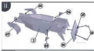 Mounting the suspension is not fun. The lack of placement points on the chassis along with the vague instructions leaves the modeller with a by-guess-or-by-golly