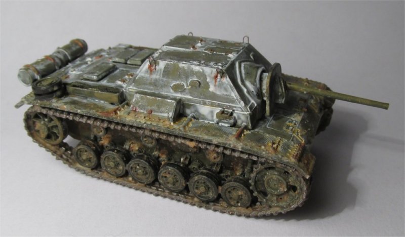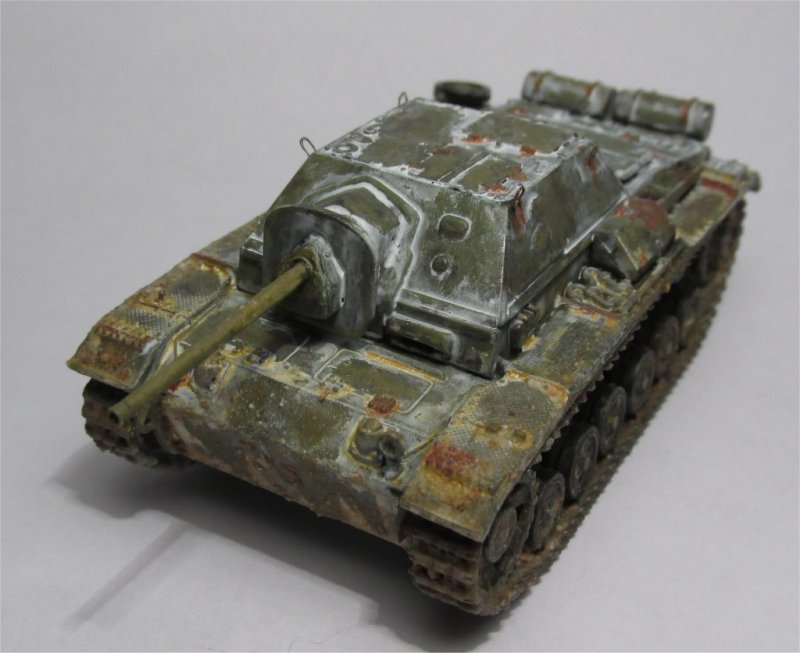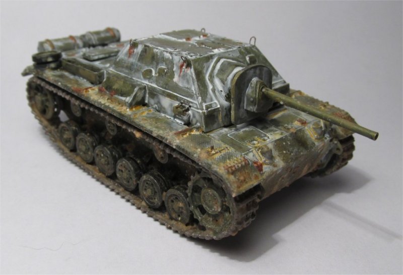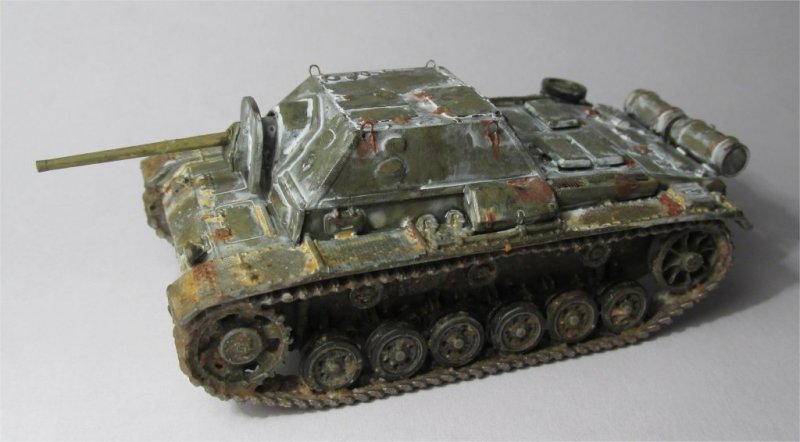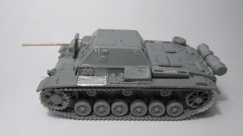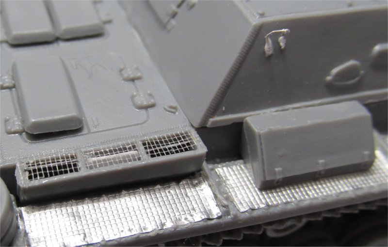 As I wrote in the preview, there are too many tools on the fenders for a SU-76i, so I cut out some of them and replaced part of the fenders with tin foil which happened to have a similar thread pattern.