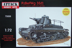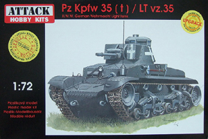 Introduction The kits produced by the Czech company Attack are well-known (and sometimes feared) as typical short-runs with soft details and poor fit. Nevertheless, the Skoda LT vz. 35 was the main tank of the pre-war Czechoslovak army and this kit was eagerly awaited by Czech and Slovak modelers. In the end, Attack really outdid itself and these are their best kits so far. After the occupation of the Czech territory in 1939, most of the tanks were used by Germany as the Pz.Kpfw. 35(t). Some of the LT vz. 35 remained in Slovakia and these saw service on the Eastern Front in 1941. A few of them survived long enough to take part in the Slovak uprising against the Germans in 1944. Other users were Romania and Bulgaria. Romanian tanks were designated as R-2 and they had slightly different rear plates on the turret and hull. 2. Attack's Pz.Kpfw.35(t) series At present the series consists of