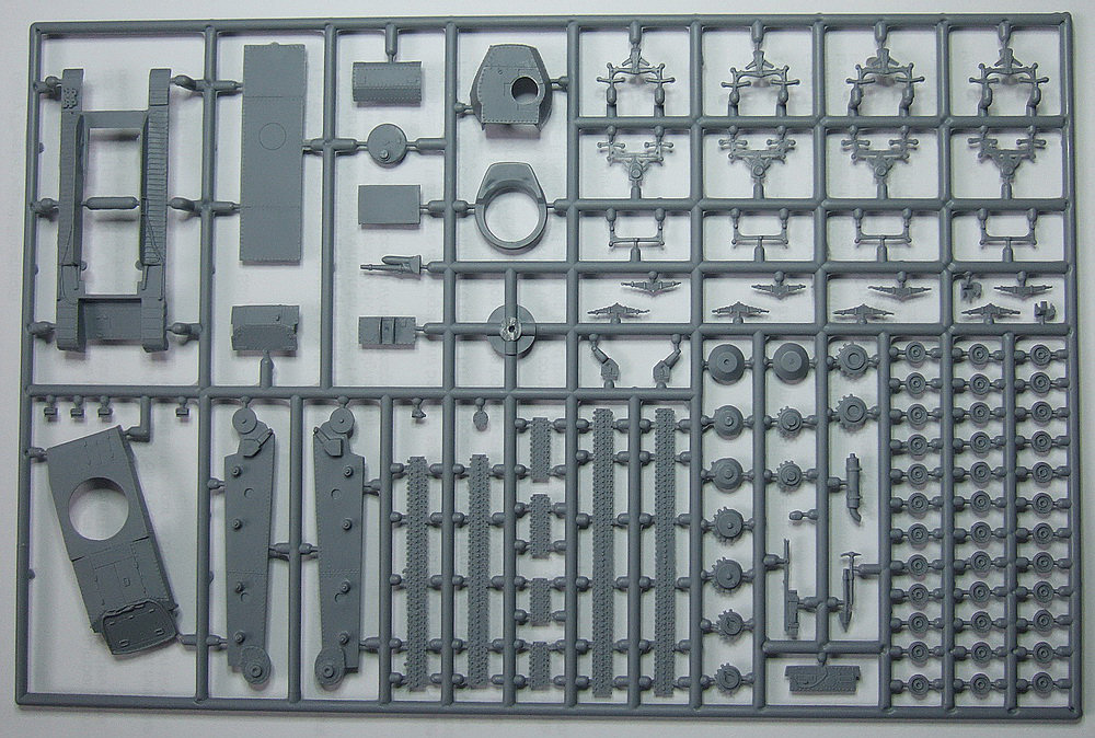3. Kit No. 72832 PzKpfw 35(t) / LT vz. 35 Basic Kit This kit contains one sprue with plastic parts and one casting block with tiny resin bits (return rollers, towing hook and MGs). While the level of detail is good, care must be taken when fitting the parts. In particular, the suspension seems to be quite complicated with myriads of small wheels. Beware of the tracks: they are made from several straight sections and you must bend them around the idler wheels and drive sprockets. There are four marking options in this kit, one in the Czechoslovak 3-color scheme and three German tanks in overall Grey. 1.