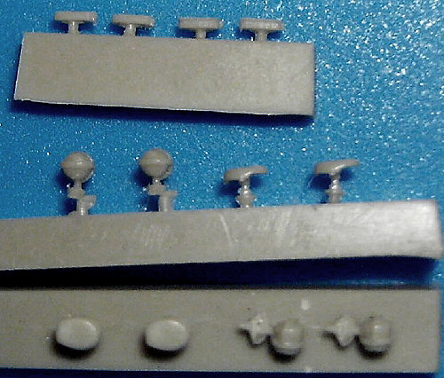 set gives you 2 Notek lights 2 Bosch lights (different sprue but same part) 4 rear convoy light. Early type. Same configuration. Sadly, you do not get the typical late war tubular rear light. Also, it would have been nice if the rear convoy light were provided in its two positions. |