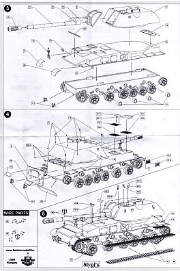 This resin kit is packaged in a cardboard box with the subject picture on the front and plan views on one long side of the box. All of the 100 resin parts are in four ziplock baggies. The resin is a weird lemon yellow with a few lighter colored pieces thrown in. One baggy has a photo-etch fret with 15 pieces, one baggy with the track pieces which consist of 50 individual track links and 8 track lengths. One piece of wire is supposed to be included, but my kit was missing it. The other baggy is stuffed with the rest of the kit parts. Very small amounts of flash are present as are some pour blocks, but they are not heavy handed. The instruction sheet is an excellently rendered CAD-type drawing, double sided, that locates everything for the most part, in a clear manner. Another smaller sheet of paper shows some of the other kits that are available in 1/72, all modern, all Warsaw Pact with the exception of a U.S. HET M1070. Balaton Modell's kits are not cheap, but are priced in the normal to upper-end of the kit price range. The largest parts are the turret and the 2 piece, horizonally split hull. I find that part disturbing and quite unusual. There are four slots to line the halves up, so it should work out, but I can't see the reason to do it unless there are further models forthcomming that will use the lower part of the hull, but not the upper (or vise-versa). Information from the book Russian Military Power circa 1980: The 2S3 was known at some time past as the 152mm M-1973, able to fire a shell 18,000 meters. A battalion of 18 of these were allocated per tank division. The vehicle is built on a modified SA-4 Ganaf chassis. I'm sure more about this vehicle is on the web and I believe there was at least one of these beasts on display at the Duxford Museum, England, in desert colors around the 1998 time frame, stored outside the Land Warfare hall. |
