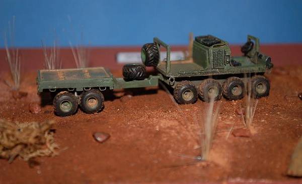 As this kind of vehicles is intended to be used in the South African bush with its distinctive dark red brown earth, I decided to use only MIG pigments to obtain a dusty weathered effect.