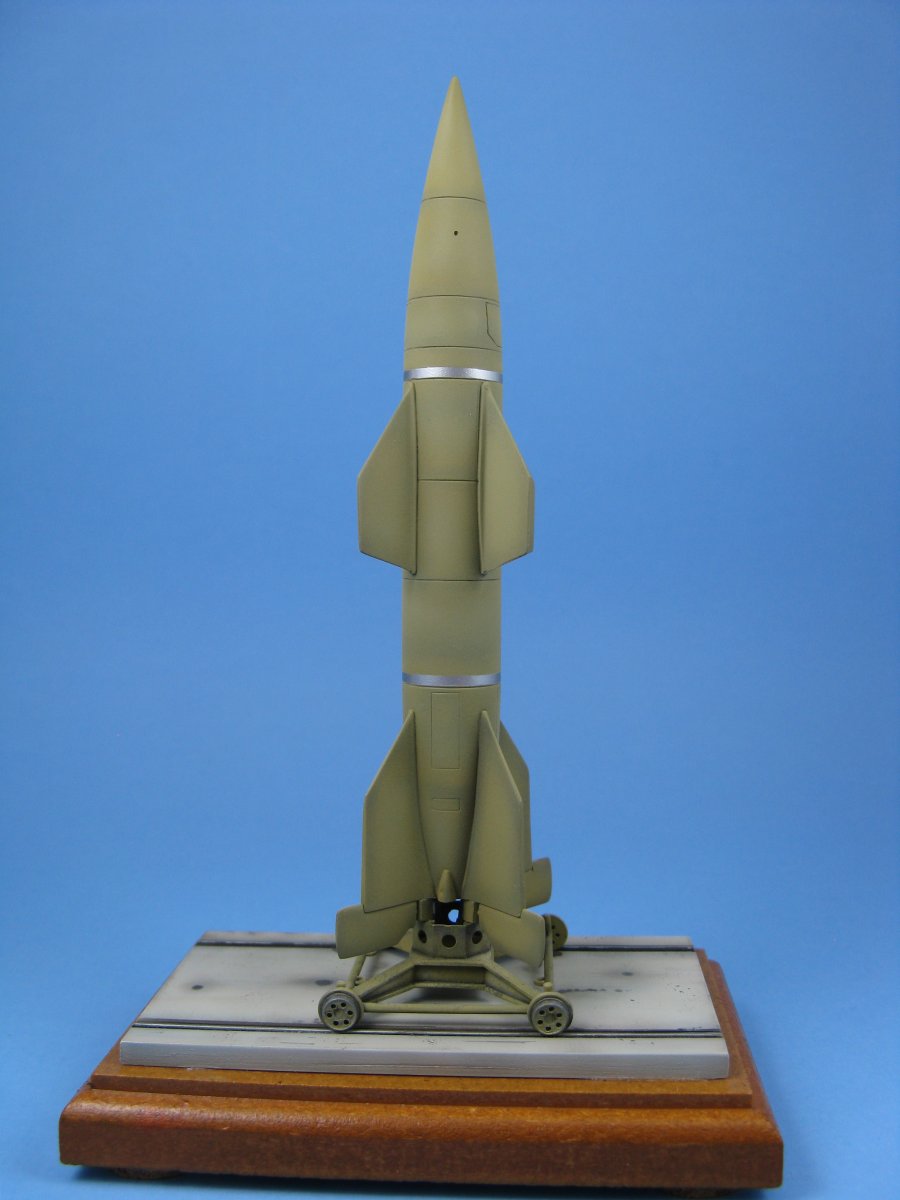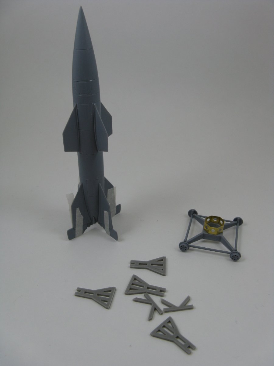 Since it appears that the rockets were kept protected from the elements most of the time, I applied no weathering. I did weather and heavily chip the transport trolley