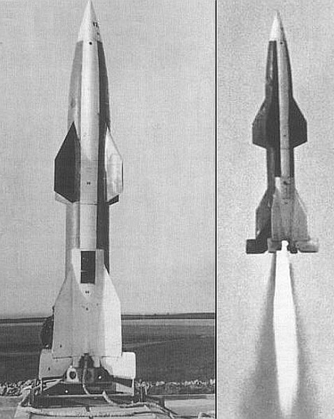 was much like a small V-2 rocket, with extra fins located approximately mid-fuselage. On the early prototypes (W1 series) these fins were quite large and were