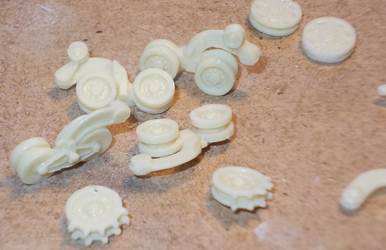 The wheel halves have no locating pegs, which makes it a bit more
